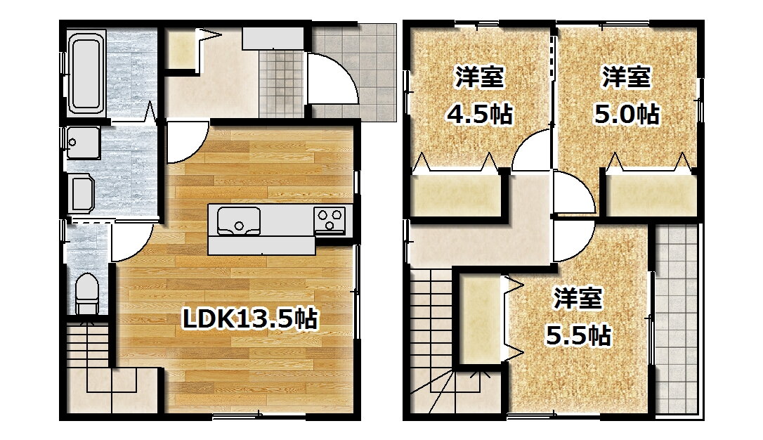 3LDK(洋5.5 洋5 洋4.5 LDK13.5) |