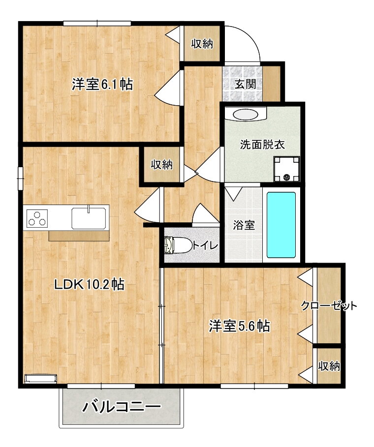 | 間取り | 2LDK(洋6.1 洋5.6 LDK10.2) | 築年月(築年数) | 2013年1月(築12年12ヶ月) |