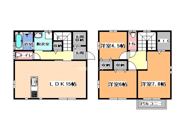 3LDK(洋7.8 洋6 洋4.5 LDK15) |