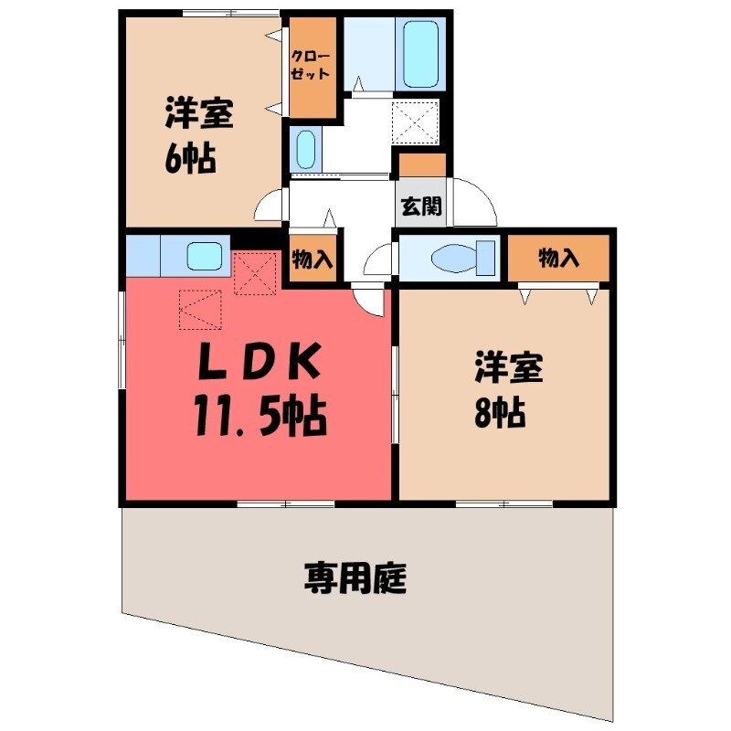 | 間取り | 2LDK(洋8 洋6 LDK11.5) | 築年月(築年数) | 2002年9月(築23年2ヶ月) |