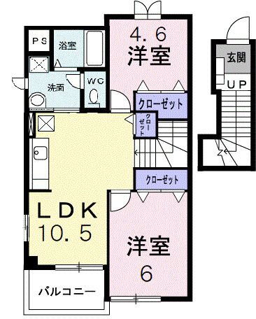 2LDK(洋6.00 洋4.60 LDK10.50) |