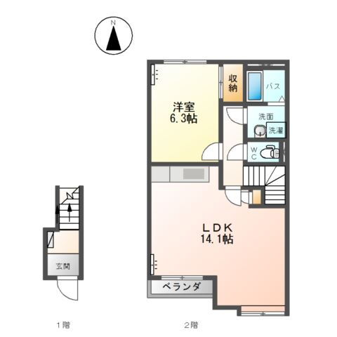 | 間取り | 1LDK(洋6.3 LDK14.1) | 築年月(築年数) | 2007年7月(築18年4ヶ月) |