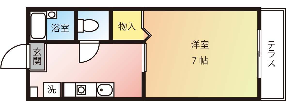 冷房・暖房・エアコン・バス・トイレ別・トイレ・収納スペース・洗濯機置場・CATV・温水洗浄便座・システムキッチン・テラス・都市ガス・ディンプルキー・浴トイレ別・シューズボックス・室内洗濯機置き場 |