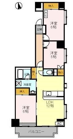 3LDK(洋6 洋6 洋5 LDK12) |