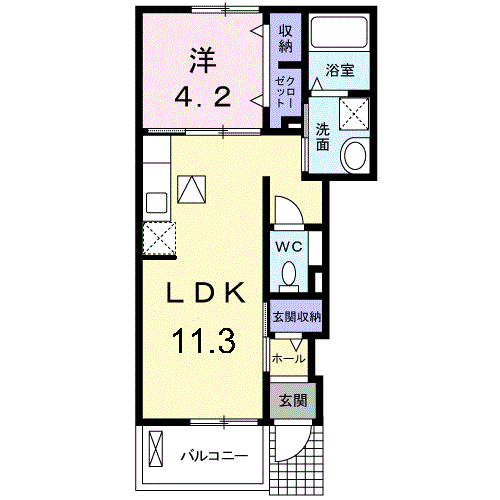 | 間取り | 1LDK(洋4.2 LDK11.3) | 築年月(築年数) | 2015年1月(築10年12ヶ月) |