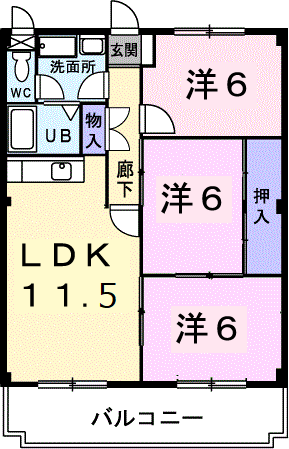 | 間取り | 3LDK(洋6 洋6 洋6 LDK11.5) | 築年月(築年数) | 1994年3月(築31年10ヶ月) |