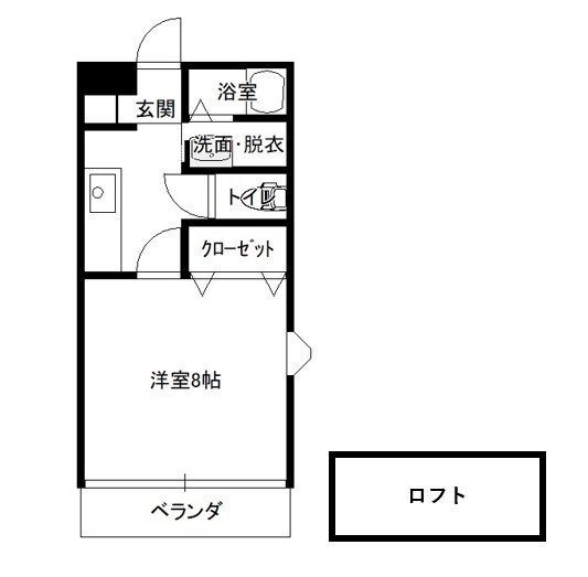 | 間取り | 1K(洋8 K2) | 築年月(築年数) | 2003年9月(築22年2ヶ月) |