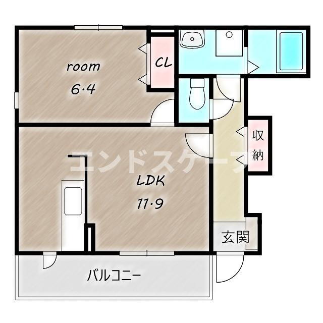 1LDK(洋6.4 LDK11.9) |