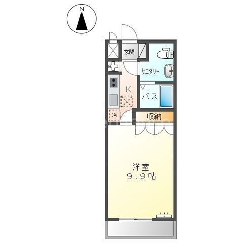 | 間取り | 1K(洋9.9) | 築年月(築年数) | 2006年3月(築19年8ヶ月) |