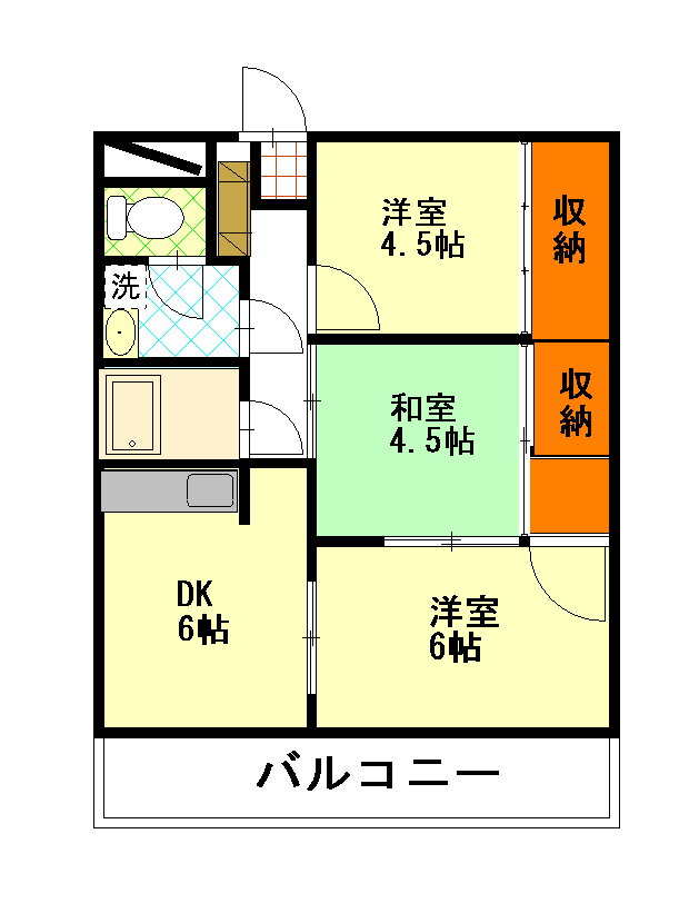 | 間取り | 3DK(和4.5 洋6 洋4.5) | 築年月(築年数) | 1995年2月(築30年10ヶ月) |
