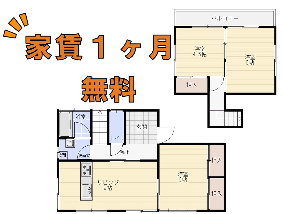 3LDK(洋6 洋6 洋4.5 LDK9) |