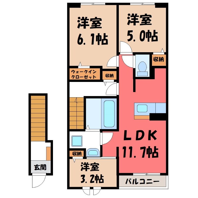 3LDK(洋6.1 洋5 洋3.2 LDK11.7) |