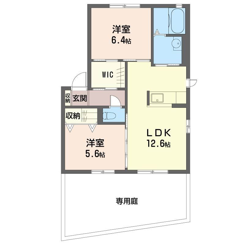 | 間取り | 2LDK(洋6.4 洋5.6 LDK12.6) | 築年月(築年数) | 2010年10月(築15年1ヶ月) |
