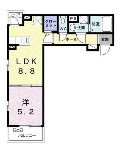 | 間取り | 1LDK(洋5.2 LDK8.8) | 築年月(築年数) | 2020年9月(築5年4ヶ月) |