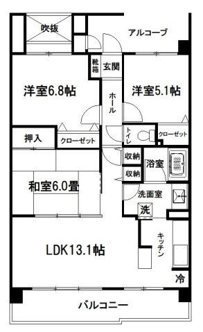 | 間取り | 3LDK(和6.00 洋6.80 洋5.10 LDK13.10) | 築年月(築年数) | 2003年11月(築22年2ヶ月) |