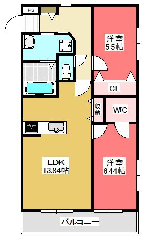 2LDK(洋6.4 洋5.5 LDK13.8) |