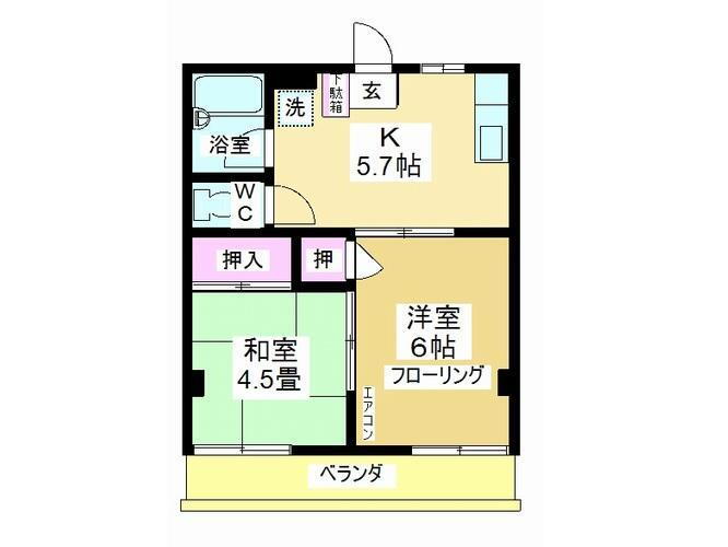 | 間取り | 2K(和4.5 洋6 K5.7) | 築年月(築年数) | 1988年4月(築37年8ヶ月) |