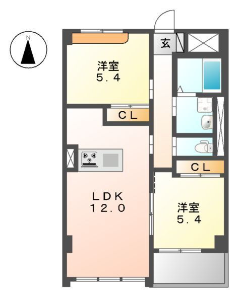 | 間取り | 2LDK(洋5.4 洋5.4 LDK12.0) | 築年月(築年数) | 2013年10月(築12年1ヶ月) |