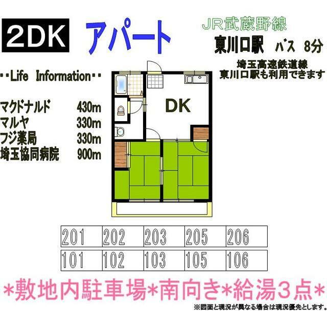 | 備考 | 損保要/保証会社利用必:賃料総額の50%~/普通借家02年/敷金1ヶ月/保証金不要/プロパンガス/礼金1ヶ月/デンキチ 川口差間店(ホームセンター)まで662m/セブンイレブン 川口差間店(コンビニ)まで522m/セブンイレブン 川口木曽呂店(コンビニ)まで827m/セブンイレブン 川口木曽呂店(コンビニ)まで827m/ベルク 川口差間店(スーパー)まで858m | ||||