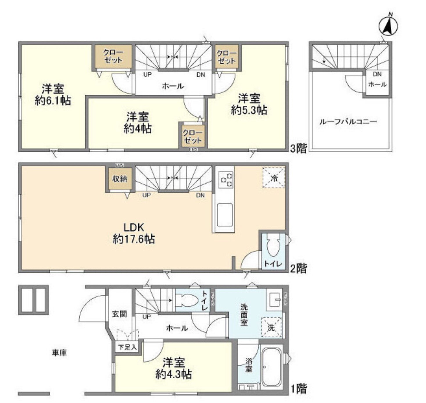 | 間取り | 4LDK(洋6.1 洋5.3 洋4 洋4 LDK17.6) | 築年月(築年数) | 2025年10月(築1年未満) |
