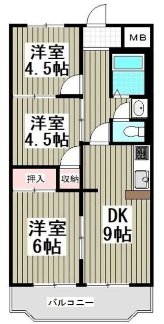 | 間取り | 3DK(洋6.0 洋4.5 洋4.5 DK9.0) | 築年月(築年数) | 1990年4月(築35年9ヶ月) |