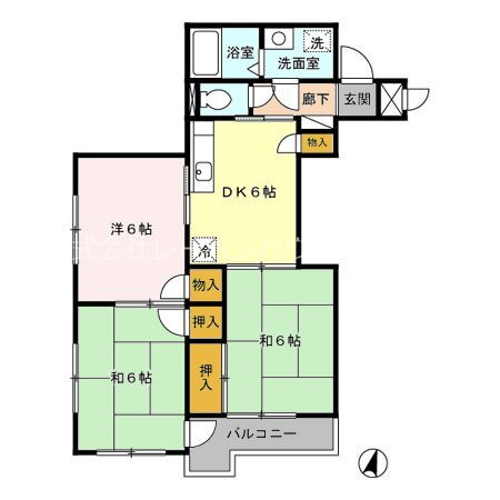 | 間取り | 3DK(和6 和6 洋6 DK6) | 築年月(築年数) | 1998年6月(築27年6ヶ月) |