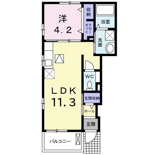 | 間取り | 1LDK(洋4.2 LDK11.3) | 築年月(築年数) | 2014年2月(築11年11ヶ月) |