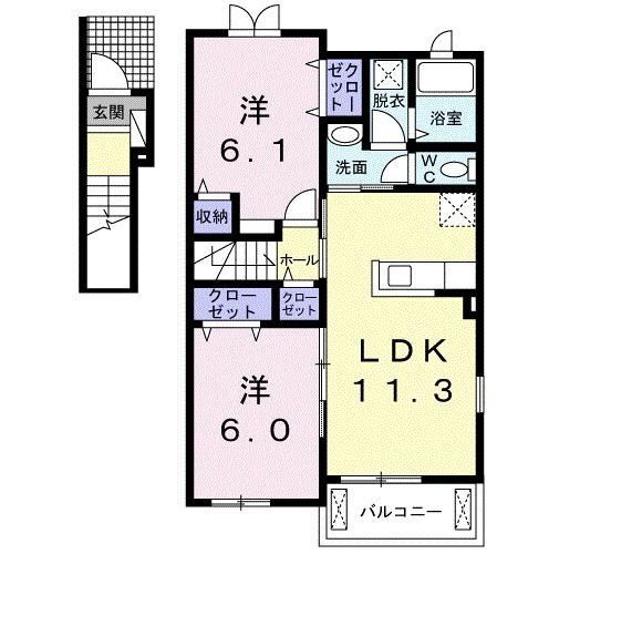 | 間取り | 2LDK(洋6.1 洋6.0 LDK11.3) | 築年月(築年数) | 2015年6月(築10年7ヶ月) |