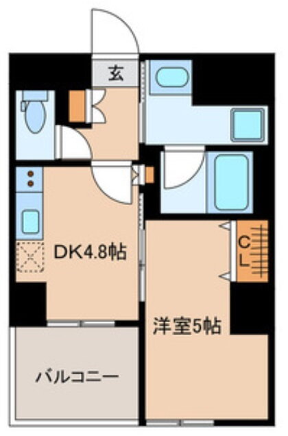 | 間取り | 1DK(洋5 DK4.8) | 築年月(築年数) | 2023年2月(築2年11ヶ月) |