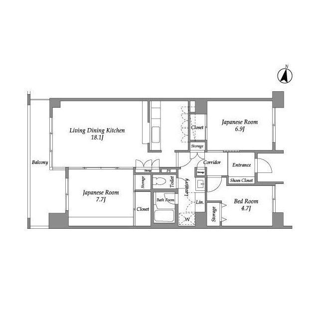 | 間取り | 3LDK(和7.7 和6.9 洋4.7 LDK18.2) | 築年月(築年数) | 1995年2月(築30年10ヶ月) |