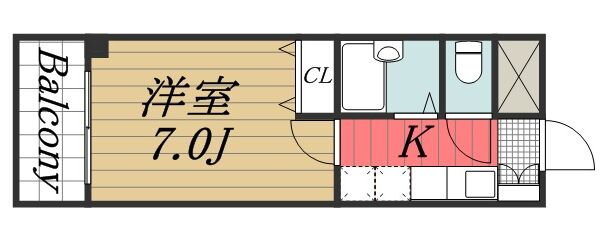 | 間取り | 1K(洋7.0) | 築年月(築年数) | 2001年3月(築24年9ヶ月) |
