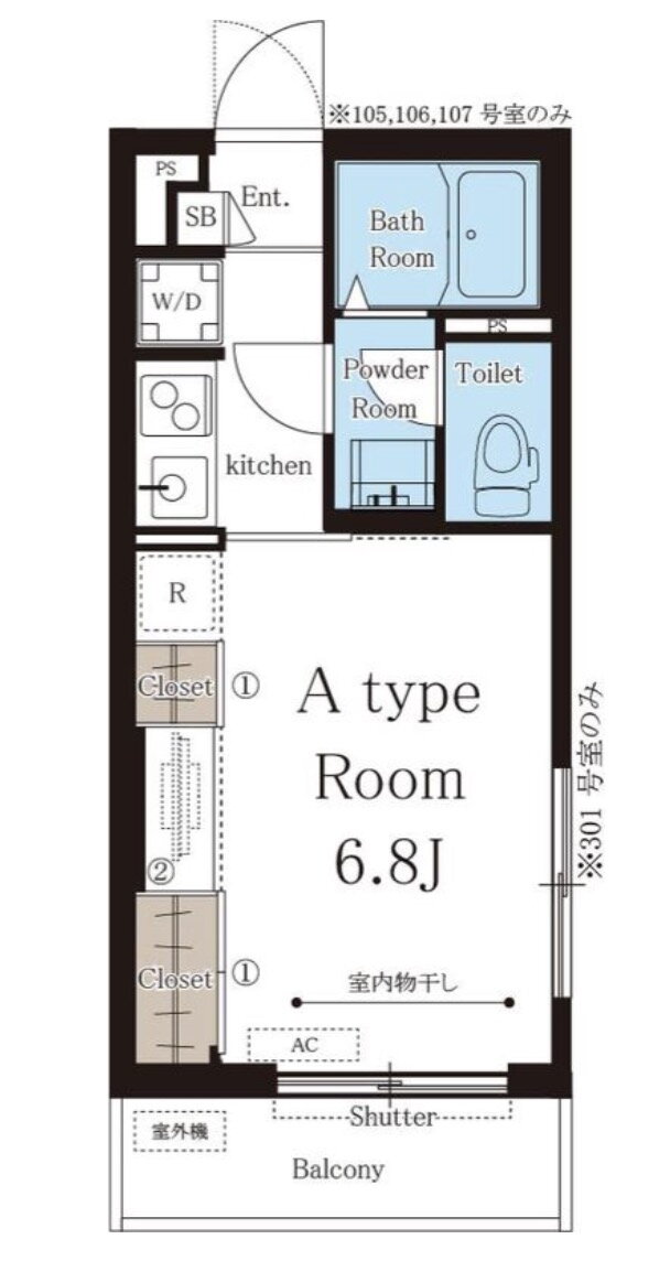 | 間取り | 1K(洋6.8) | 築年月(築年数) | 2018年7月(築7年5ヶ月) |