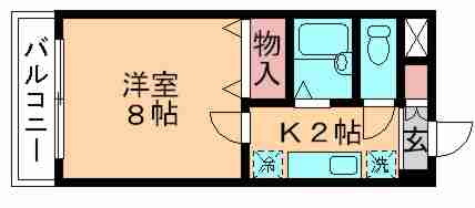 | 間取り | 1K(洋8 K3) | 築年月(築年数) | 2005年2月(築20年10ヶ月) |
