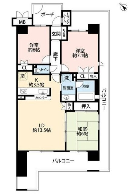 | 間取り | 3LDK(和6 洋7.1 洋6) | 築年月(築年数) | 2001年1月(築24年11ヶ月) |