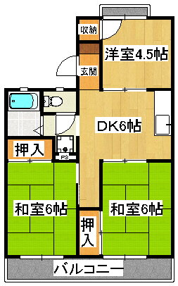 | 間取り | 3DK(和6.0 和6.0 洋4.5 DK6.0) | 築年月(築年数) | 1987年3月(築38年10ヶ月) |