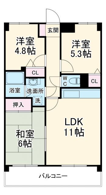 3LDK(和6.0 洋5.3 洋4.8 LDK11.0) |