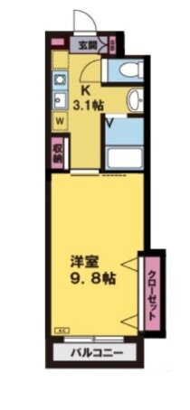 | 間取り | 1K(洋9.8) | 築年月(築年数) | 2004年4月(築21年9ヶ月) |