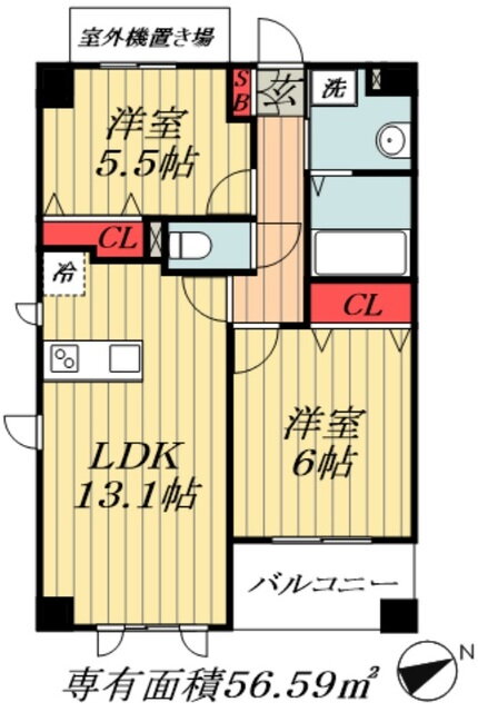 | 間取り | 2LDK(洋6 洋4.9 LDK13.1) | 築年月(築年数) | 2012年3月(築13年9ヶ月) |