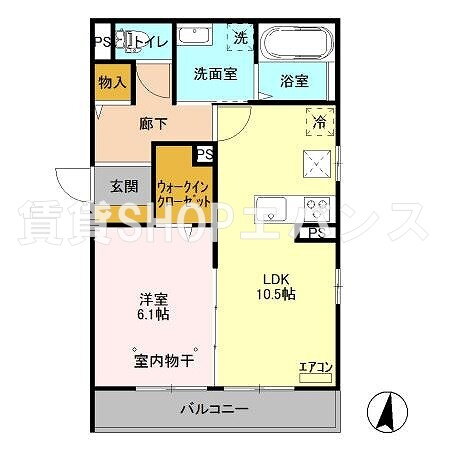 | 間取り | 1LDK(洋6.1 LDK10.5) | 築年月(築年数) | 2018年3月(築7年9ヶ月) |