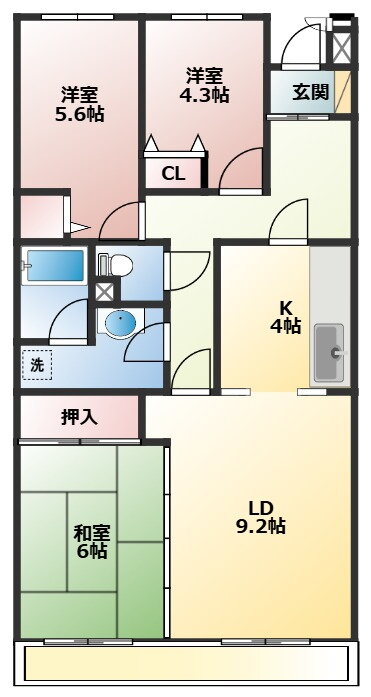 | 間取り | 3LDK(和6.0 洋5.6 洋4.3 LD9.2K4.0) | 築年月(築年数) | 1992年12月(築33年) |