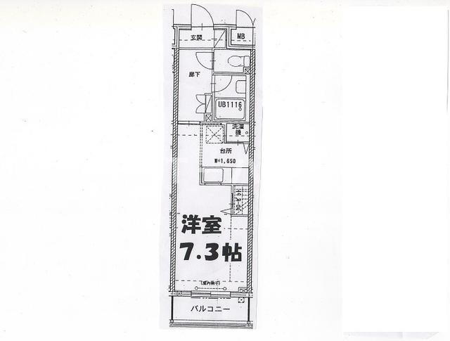 | 間取り | 1K(洋7.3) | 築年月(築年数) | 2001年9月(築24年3ヶ月) |