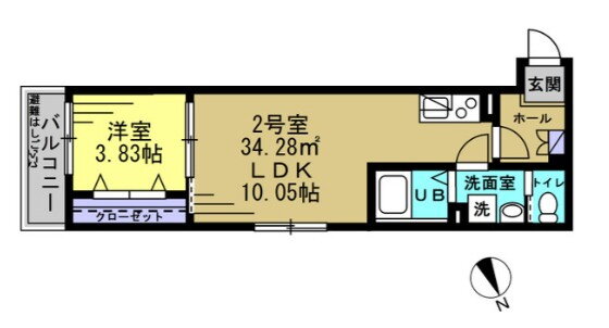 | 専有面積 | 34.28㎡ | 所在階/階数 | 2階/3階建 |