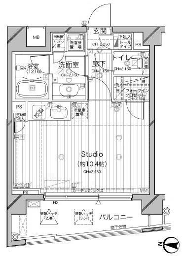 | 間取り | ワンルーム(洋10.4) | 築年月(築年数) | 2006年2月(築19年10ヶ月) |