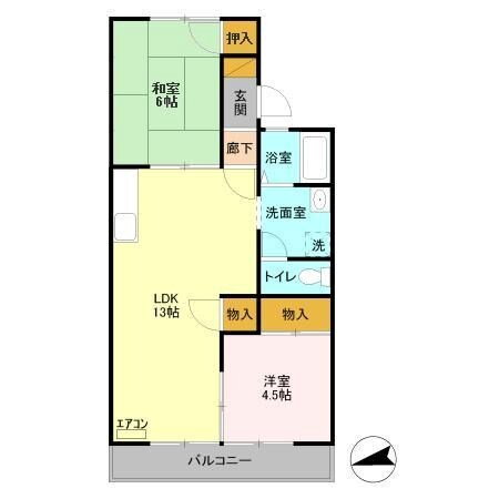 | 間取り | 2LDK(和6 洋4.5 LDK13) | 築年月(築年数) | 1985年2月(築40年11ヶ月) |