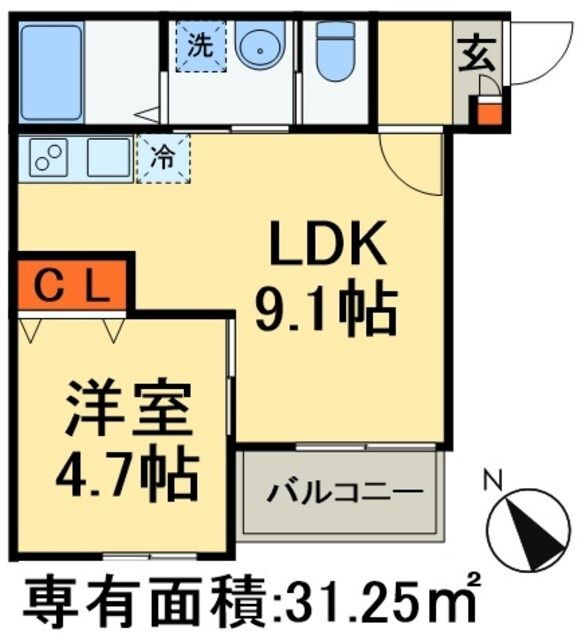 1LDK(洋4.7 LDK9.1) |