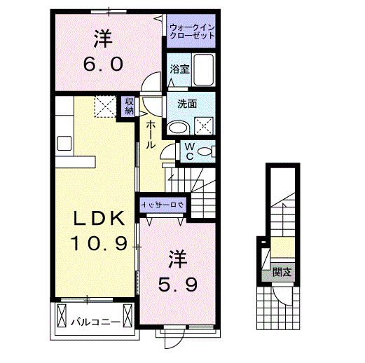 | 間取り | 2LDK(洋6 洋6 LDK10.9) | 築年月(築年数) | 2015年6月(築10年7ヶ月) |