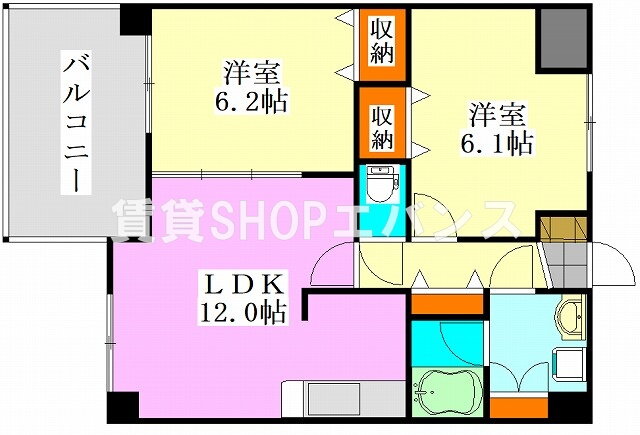 | 間取り | 2LDK(洋6.2 洋6.1 LDK12.0) | 築年月(築年数) | 2007年1月(築18年11ヶ月) |