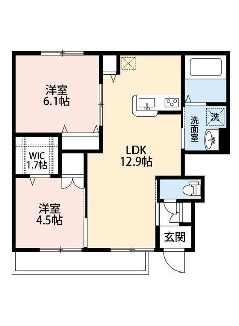 間取り 2LDK 専有面積 56.92m2