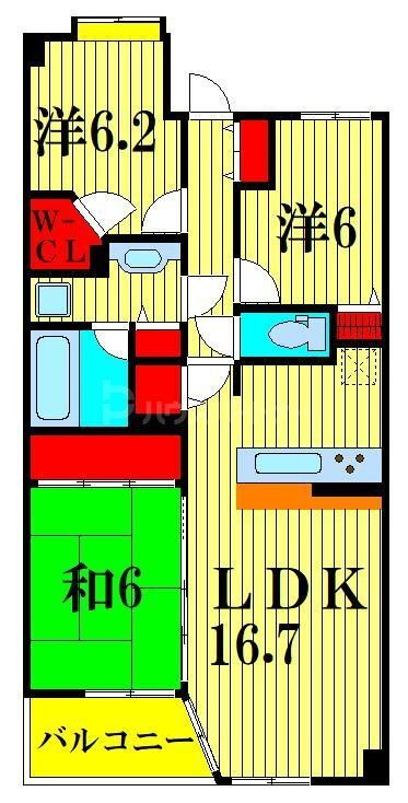 | 間取り | 3LDK(和6.0 洋6.2 洋6.0 LDK16.7) | 築年月(築年数) | 2002年3月(築23年8ヶ月) |