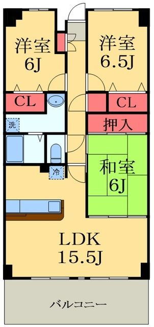 | 間取り | 3LDK(和6.0 洋6.5 洋6.0 LDK15.5) | 築年月(築年数) | 2004年1月(築21年11ヶ月) |